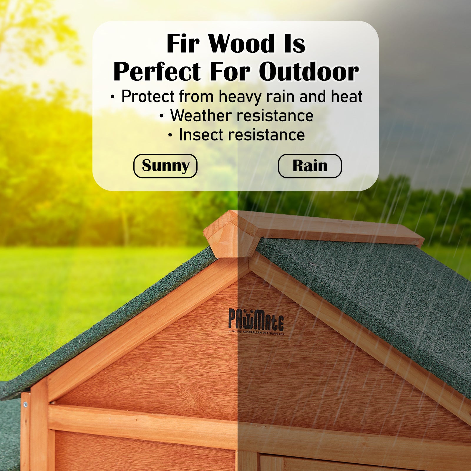 With our Paw Mate MANSION pet hutch, you have a piece of mind as it gives them protection and plenty of space to run. As constructed from non-toxic fir wood and galvanised mesh wire, it ensures durability, predator-proof, and insect resistance. This spacious and double-level enclosure allows sufficient open ground floor for grazing and exercise, given that hopping up and down the ramp can strengthen your pets' muscles.