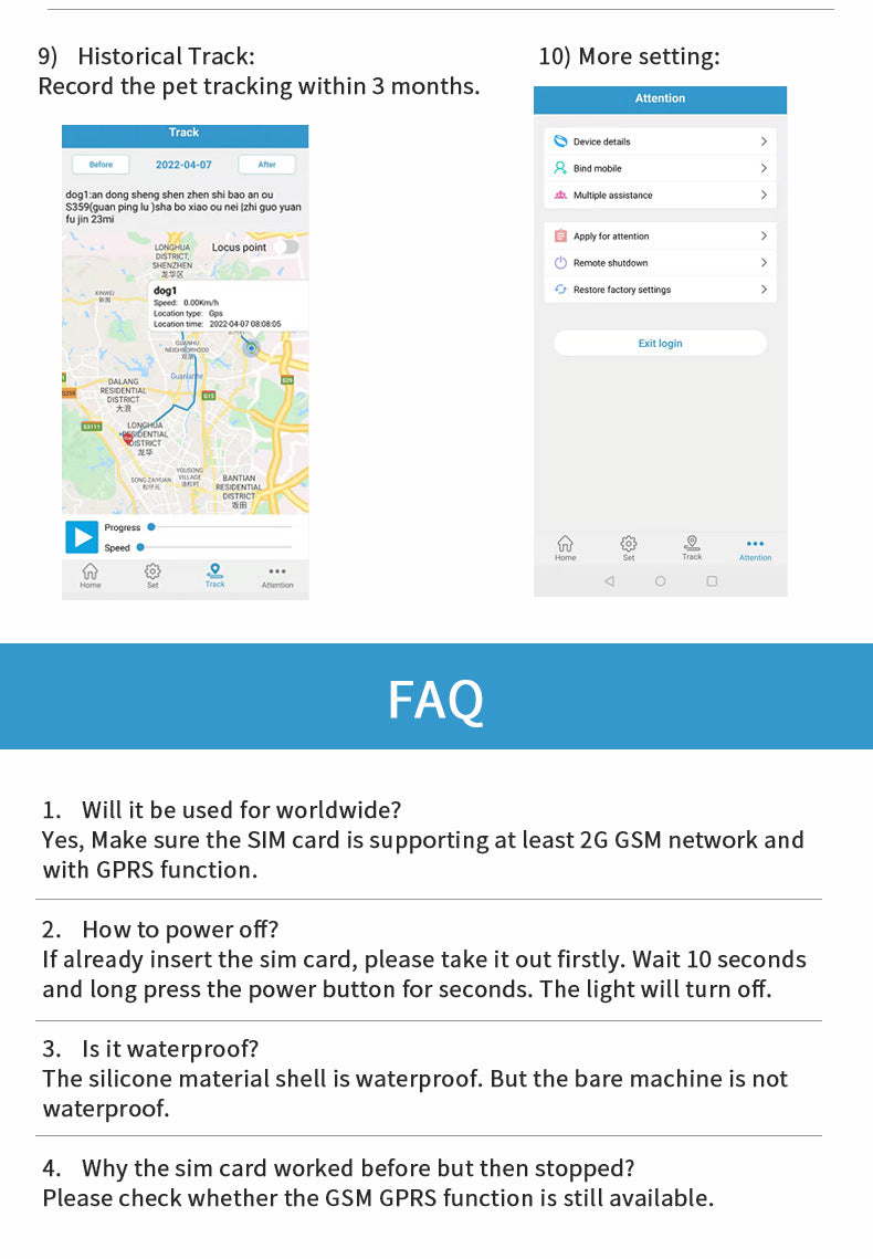 • Real-Time Location Updates: Track your pet's whereabouts in real-time via a compatible mobile application or platform (App/Platform details typically provided with the product).