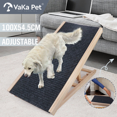 VaKa 100cm Foldable Dog Pet Ramp Adjustable Height Dogs Stairs For Bed Sofa 82007