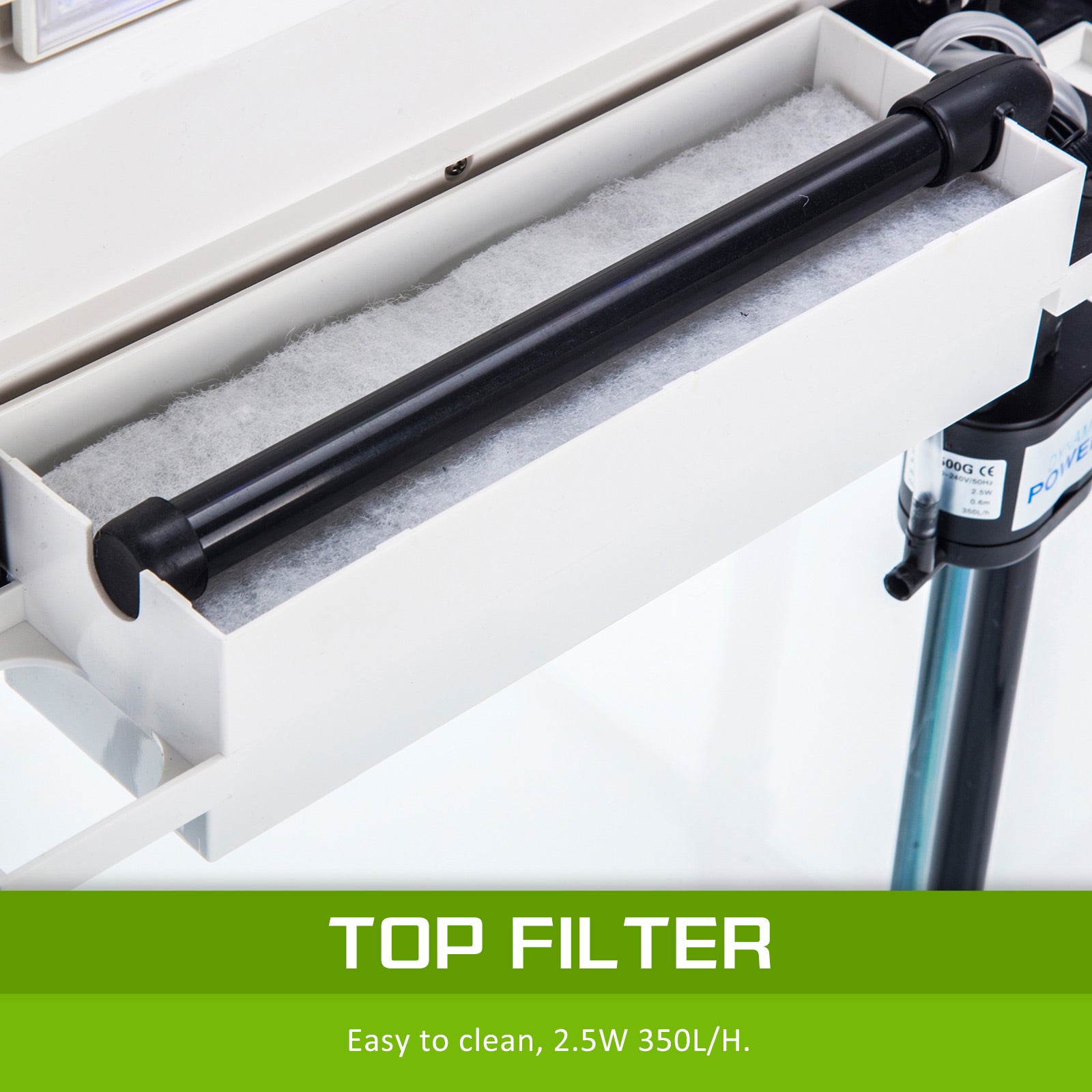 - 2.5W 350L/hr flow water pump with water filter with very quiet compressor and low vibration to keep your environment comfortable