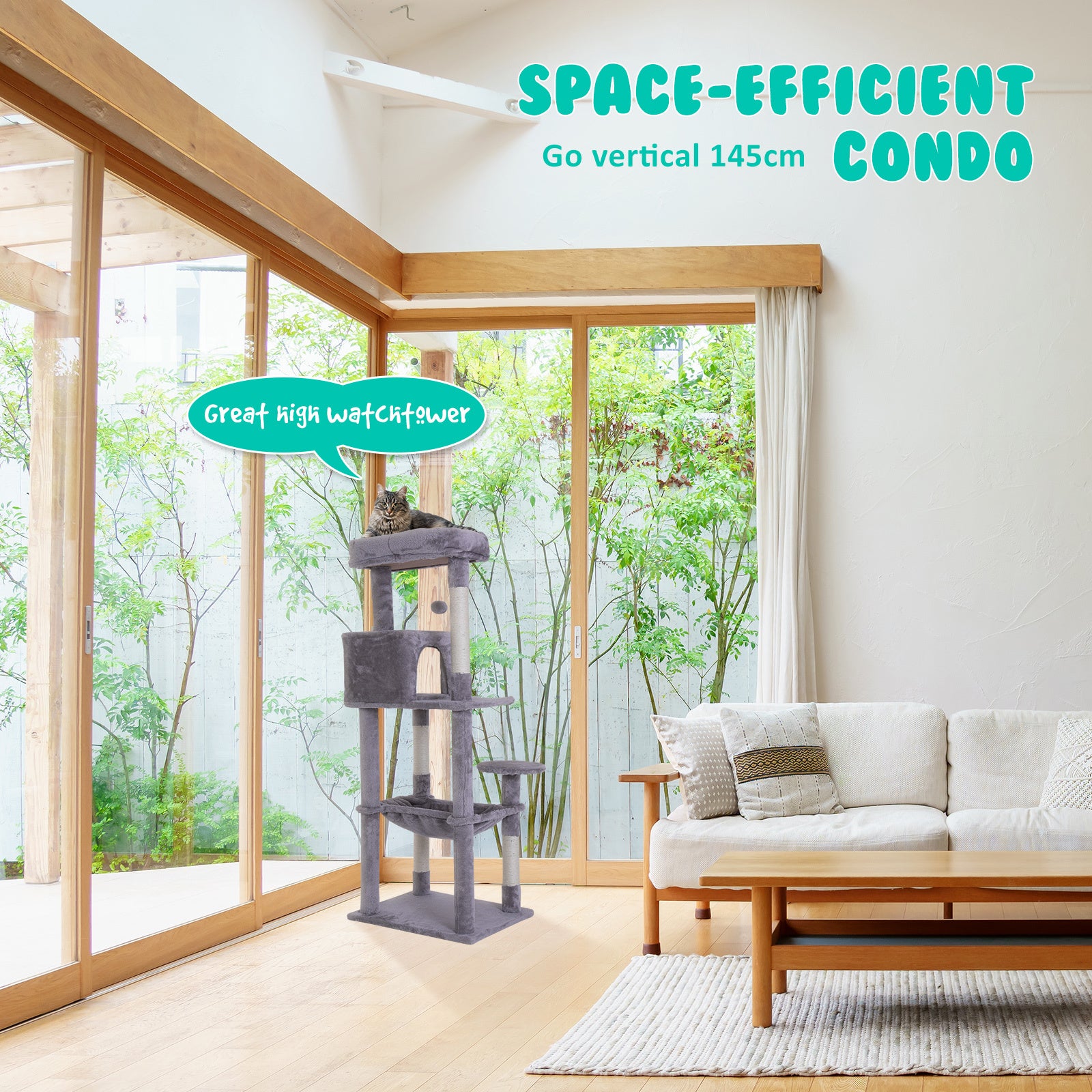 Cat Tree Multi Level Sisal Scratcher CATOPIA 143cm Condo House Tower GREY