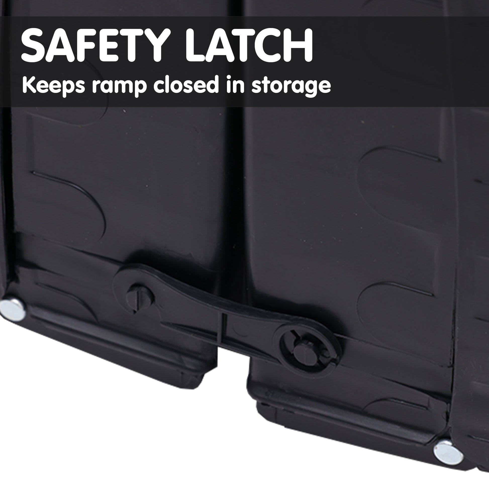 This pet ramp folds up compactly, with a built-in handle in the centre for hassle-free carrying. Raised rails along the surface prevent little paws from slipping, while a safety latch keeps the ramp closed when it's not being used.
