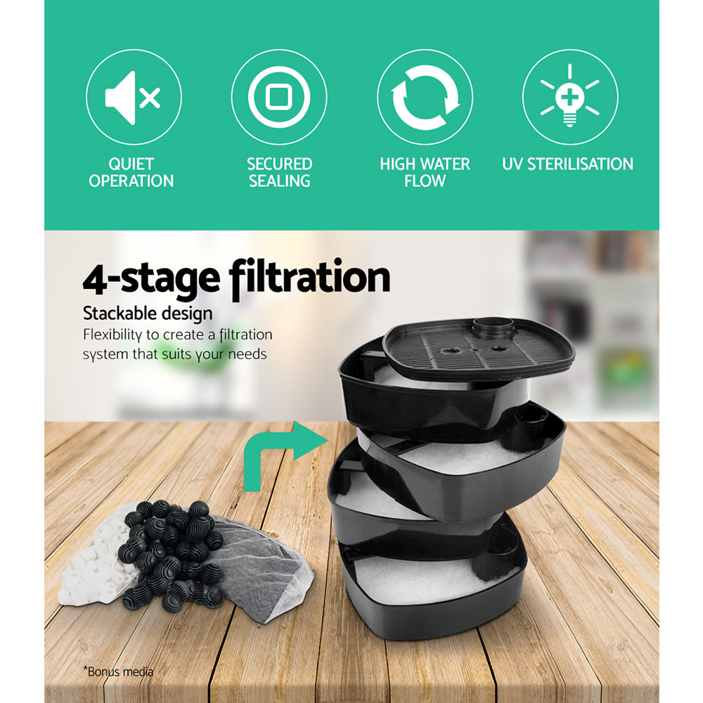Once you start filtering your tank, you will begin to see clearer and purer waters and be able to take active control over your water characteristics. Best of all, it has a built-in UV steriliser light to expose passing water to lethal doses of ultraviolet and effectively kill many microorganisms.