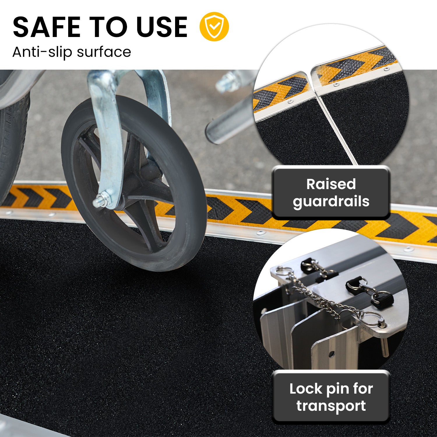 Unfold the path to accessibility with the Kartrite 10ft Aluminium Wheelchair Ramp. This portable ramp is a game-changer, offering strength, stability and safety for wheelchair, rollator and mobility scooter users. With a loading capacity of 275kg and a foldable design, its a versatile solution for various settings, from accessing steps and platforms to entering a vehicle. Whats more, the raised guard rails, anti-slip surface and lock pin mechanism ensure a secure journey every time. Upgrade your mobility with this sturdy and reliable wheelchair ramp.